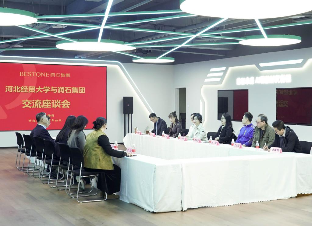 参观结束后,双方举行座谈交流。润石集团党总支副书记刘健致欢迎辞,介绍了集团总体概况、业务布局及党建、人力资源建设成效。yl7703永利官网党委书记仇静莉代表校方,介绍了学校办学特色、学科优势及人才培养成果,表达了深化校企合作的诚挚意愿。