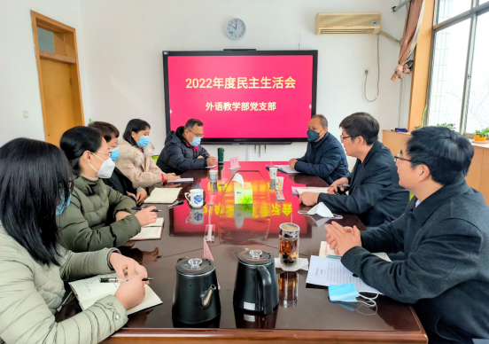 2月12日上午,外语教学部党支部召开2022年度民主生活会。校党委常委、纪委书记王保军到会指导。党支部书记王剑彪主持会议,支委会全体成员参加。