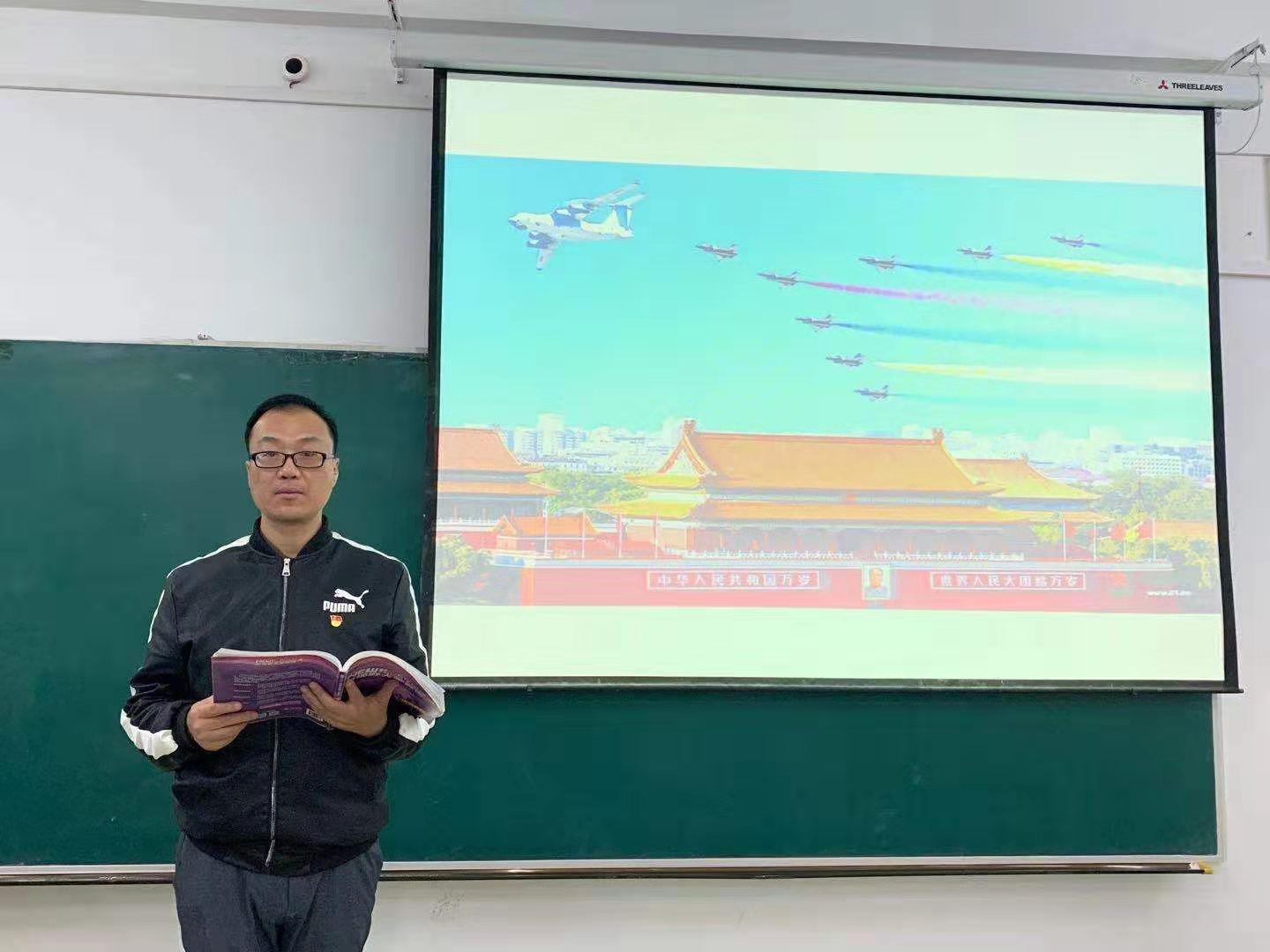 陈明老师说:“第一堂课中,我以阅兵短片和文字介绍为学生阐述什么是‘伟大的70年’。我感觉思政教育的注入为单调英语课程带来了活力,使一成不变的专业知识传授有了更加生动形象的现实体现,取得了良好的育人效果和教学效果。一定要充分利用和发挥好课堂宝贵的三分钟时间,对学生加强社会主义核心价值观和爱国爱党教育,特别是要增强学生对伟大祖国和中华文化的认同感,真正激发学生的爱国热情,为党和国家培育更多合格的建设者和接班人。”