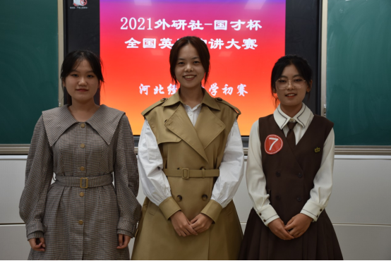 比赛分为定题演讲和评委提问两个环节,定题演讲题目为“Red Star over China”。经过角逐,比赛最终产生了一等奖3名,二等奖7名,三等奖9名。来自金融学院的张思汶同学和法学院的滕菲菲同学将代表我校参加河北省赛区的决赛。